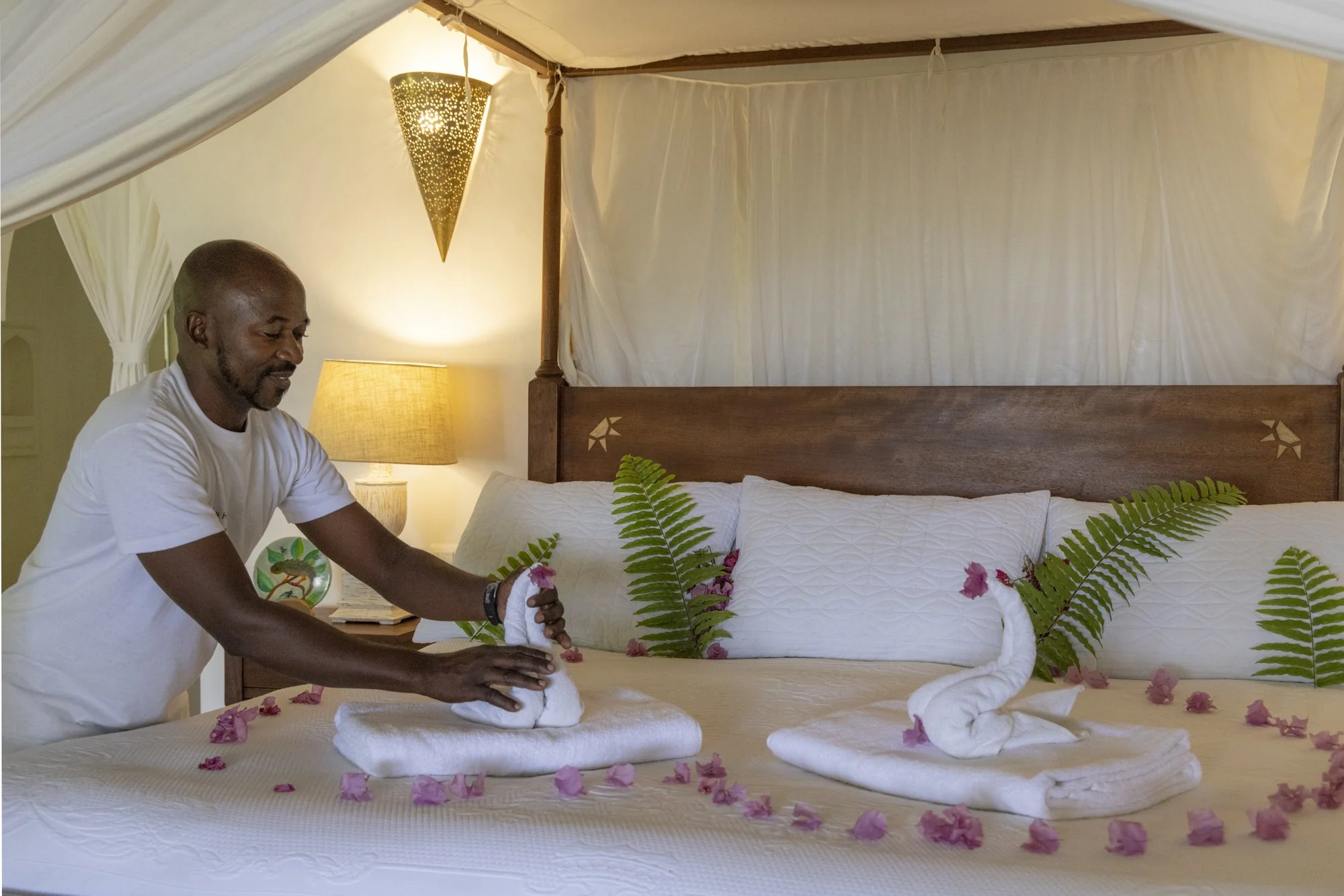 Our dedicated team of six staff provides warm, intuitive service - preparing delicious, healthy home-cooked meals, organising outings and ensuring your only task is to relax. Two private boats are available for snorkelling, dolphin watching, water-sports, or exploring secret sandbanks and neighbouring islands. With no roads, no cars, and only the rhythm of the sea to guide your days, this is barefoot luxury at its most effortless, whether you’re seeking the joy of a lively family gathering or the stillness of a romantic retreat.